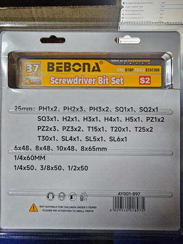 37-piece Bebona S2 steel screwdriver bit set with assorted bits and holders in carry case
